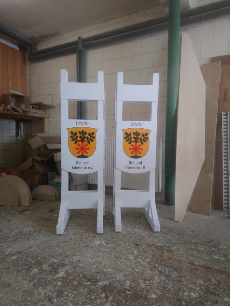 Die individuelle Gestaltung und Herstellung von Werbehindernissen ist unsere Spezialität. Nahezu alle Formen und Farben der Fangständer und Innenteile sind in Zusammenarbeit mit unserm Graphiker möglich.